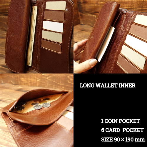 使い込むごとに表の革が馴染み、より模様が浮き出てくるという、経年変化も楽しめるウォレットです。